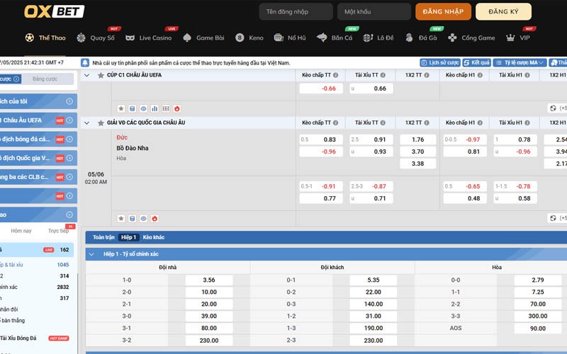 Nền tảng Oxbet cung cấp một hệ sinh thái hoàn hảo để người chơi khai thác những phân tích theo từng hiệp như vậy. Xem ngay giao diện link oxbet tại đây.