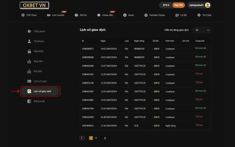 OXBET hỗ trợ rút tiền bằng tiền điện tử, phù hợp với người chơi am hiểu công nghệ hoặc giao dịch quốc tế.