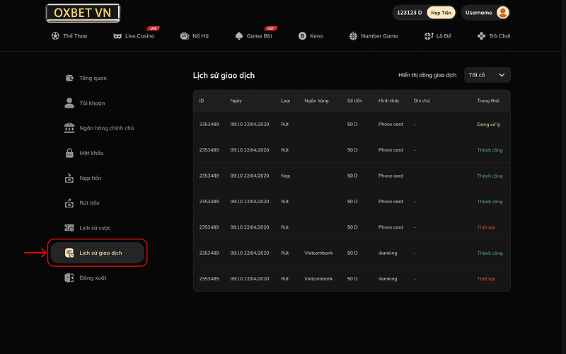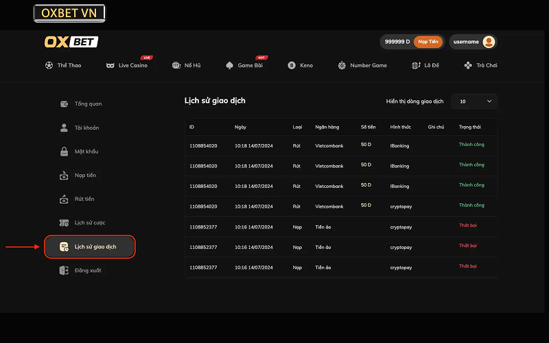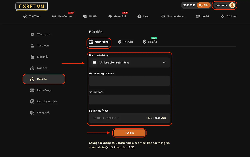 Đây là hình thức rút tiền nhà cái OXBET phổ biến và tiện lợi nhất. Người chơi có thể thực hiện trong vòng vài phút với các bước đơn giản.