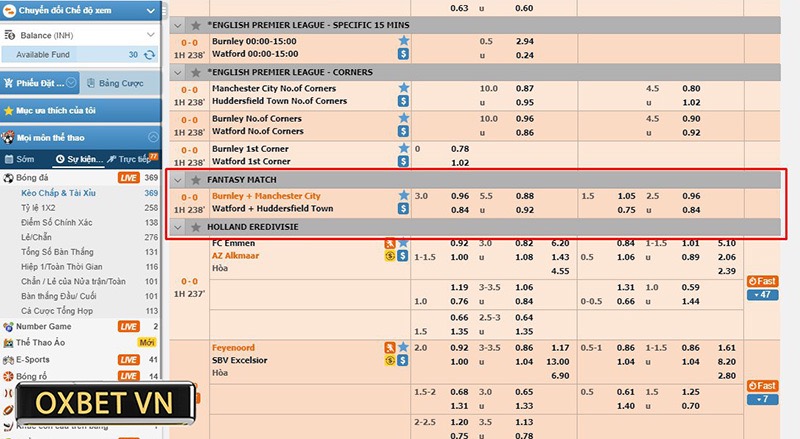 Trong thế giới cá cược bóng đá đầy biến ảo, kèo Fantasy đang nổi lên như một làn gió mới. Kèo Fantasy thu hút sự quan tâm từ thị trường cá cược quốc tế lẫn thị trường Việt Nam. Đặc biệt trên nền tảng cá cược uy tín như Oxbet, kèo Fantasy không chỉ được cập nhật nhanh chóng mà còn mang đến trải nghiệm đầy mới mẻ và thú vị. Nhất là khi người chơi hiểu rõ bản chất và biết cách áp dụng những bí kíp từ các lão làng có kinh nghiệm tại nhà cái OXBET.